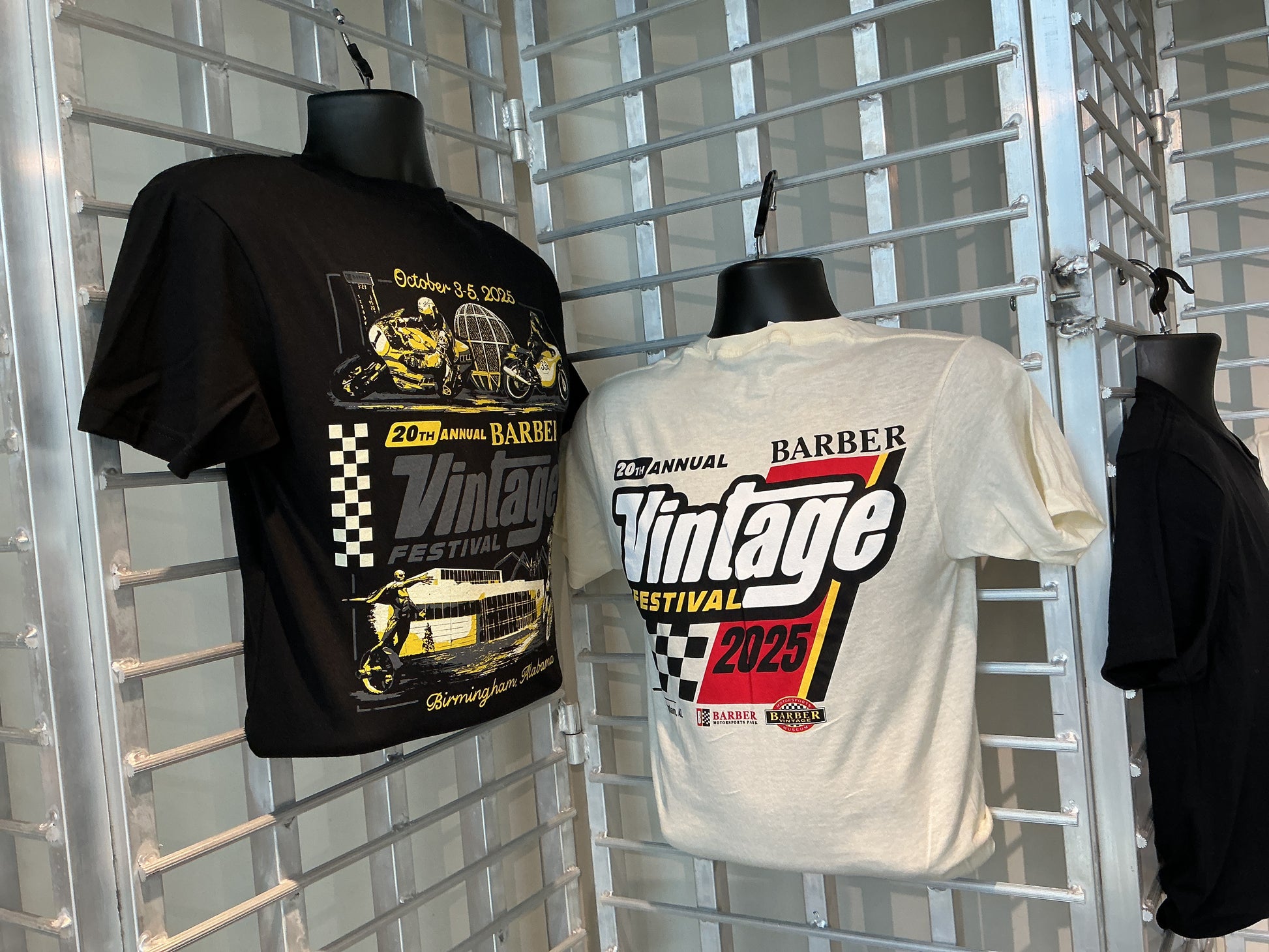 Celebrate the spirit of the 2025 Barber Vintage Festival with this playful duo of shirts! The black shirt captures all the vintage festival vibes, while the vintage white shirt features the bold 2025 Barber Vintage Festival logo. Perfect for fans who want to wear their passion for classic motorsports in style.