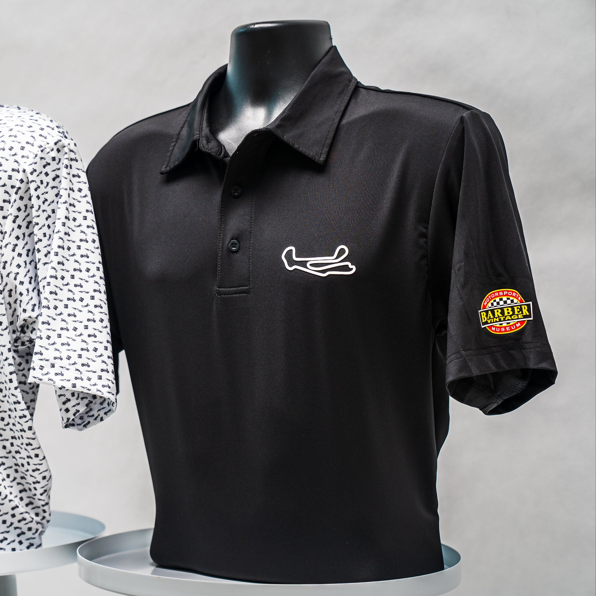 Get ready to turn heads with the Black Barber Polo! This sleek black shirt features a cool Barber Motorsports Park track outline and the iconic Barber Museum logo on the left sleeve. Silicone patches add a modern, tactile touch, making it perfect for any motorsports fan who loves style with a playful edge.